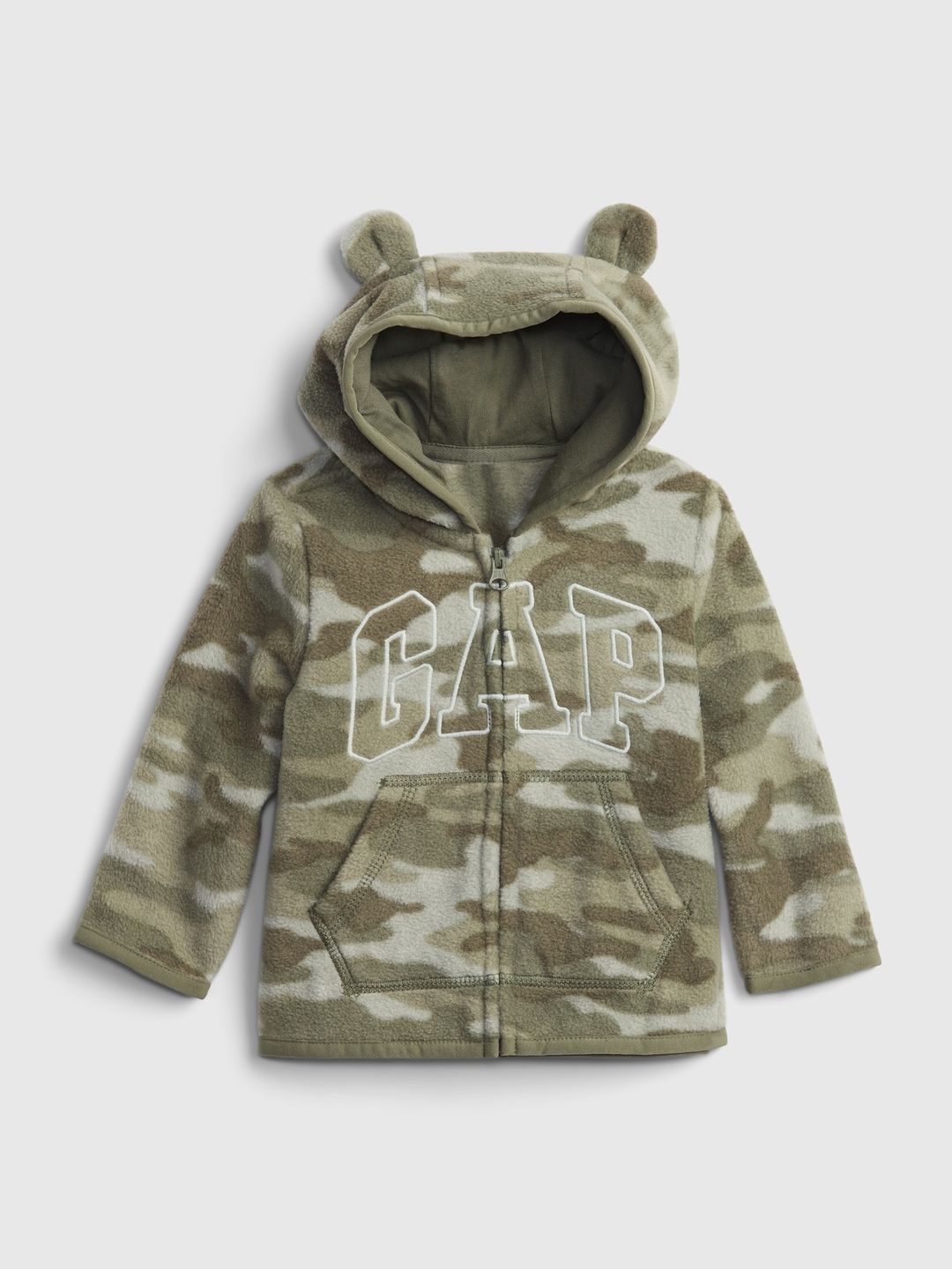 Bluza baby moro. Uroczy kaptur z uszami. Zapięcie na zamek błyskawiczny. Naszyte logo GAP. Kieszeń typu kangur i szerokie ściągacze.