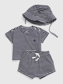 - Komplet składa się z T-shirta, spodenek i kapelusza.