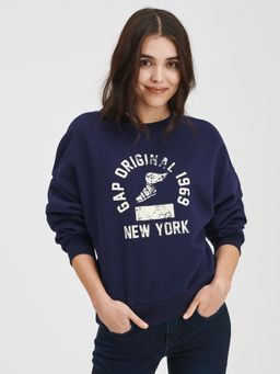 Bluza damska z logo GAP. Wkładana przez głowę. Opadające rękawy. Luźny krótki krój. Drobny wzór. Przyjemny materiał z domieszką 10% poliestru z recyklingu.
