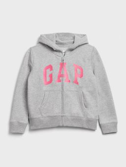 Bluza dziewczęca GAP w kolorze szarego melanżu. Zapięcie na zamek błyskawiczny. Wyraziste logo na klatce piersiowej. Długie rękawy i ściągacze. Kieszenie boczne i kaptur.
