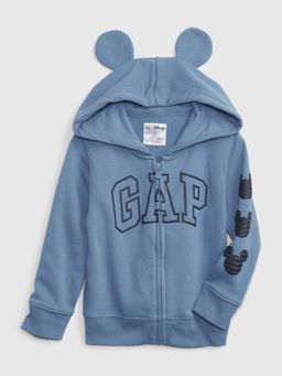 Bluza dziecięca z logo GAP. Kaptur z uszami. Zapięcie na zamek błyskawiczny. Myszka Miki na lewym rękawie. 9% poliester z recyklingu.