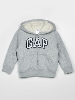 Bluza dziecięca ocieplana z logo. Kaptur i dzielona kieszeń typu kangur. Szerokie i elastyczne ściągacze. 7% poliester z recyklingu.