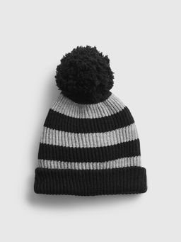Czapka dwustronna pleciona GAP z pomponem. Z jednej strony w paski, z drugiej jednokolorowa. Pompon na zatrzask.