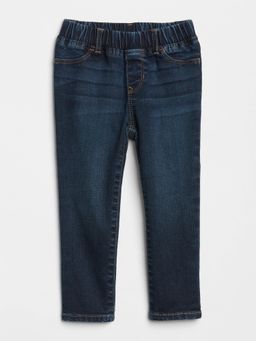 Jeansy dziewczęce z fałszywymi kieszeniami przednimi i tylnymi oraz talią elastyczną. Wyprodukowano z bardzo elastycznego denimu. Krój jeggings.