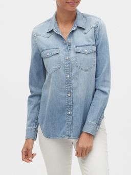 Koszula damska ze 100% bawełny. Koszula GAP z zapięciem na zatrzaski, kołnierzyk, kieszenie z klapą. Długie rękawy z mankietem.