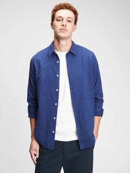 Koszula męska GAP. Koszula jednokolorowa o klasycznym kroju prostym. Kołnierz, długie rękawy z mankietami i zapięcie na guziki. Mieszanka lnu i bawełny.
