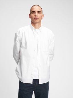 Koszula męska bawełniana GAP. Jednokolorowa koszula z długimi rękawami z mankietami. Krój luźny prosty classic. Kieszonka na klatce piersiowej, klasyczny kołnierz.