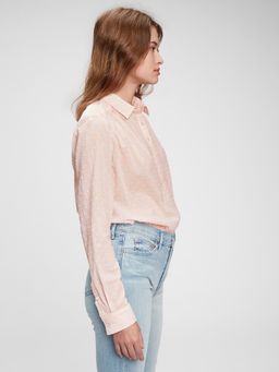Koszula damska GAP z długimi rękawami. Kołnierzyk, zapięcie na guziki. Luźny krój. 100% bawełna.
