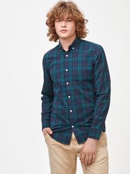 Koszula męska bawełniana GAP. Koszula w kratę z klasycznym kołnierzykiem. Długie rękawy i kieszeń na klatce piersiowej. Krój slim.