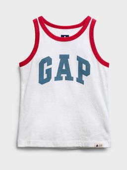 Koszulka chłopięca na ramiączkach z logo GAP. Okrągły dekolt pod szyję. Prosty krój i oblamowanie wokół wykroju ramion w kolorze czerwonym. 100% bawełna organiczna. Wyprodukowano w 100% z bawełny organicznej.
