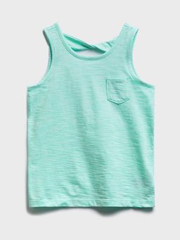 Koszulka dziewczęca na ramiączkach z krzyżowaniem na plecach. Jednokolorowa z małą kieszonką. Przyjemna miękka dzianina. 100% bawełna.