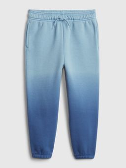 Spodnie dresowe dziecięce z talią elastyczną i sznurkiem ściągającym. Ukośne kieszenie boczne. Jedna kieszeń tylna. Kolor niebieski z motywem ombre. Materiał bawełniany z domieszką 9% poliestru z recyklingu.