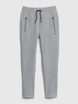 Spodnie dresowe dziecięce. Kolekcja sportowa GapFit. Wyprodukowane z materiału odprowadzającego wilgoć. Miękki materiał elastyczny. Talia elastyczna ściągana sznurkiem. Kieszenie przednie na zamek błyskawiczny. Dodatkowe przeszycia na kolanach. Logo GapFit z boku.