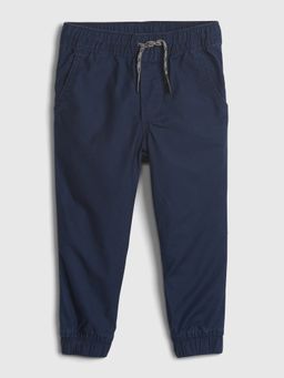 Spodnie dziecięce bawełniane GAP dla chłopca. Domieszka spandexu. Krój jogger, kolor ciemnoniebieski, talia elastyczna ze sznurkiem.