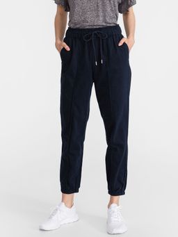 Wygodne spodnie damskie GAP ze sznurkiem ściągającym w talii. Szersze nogawki wykończone wąską lamówką z wszytą gumką. Z przodu nogawek wstawiony kant. Kieszenie boczne.