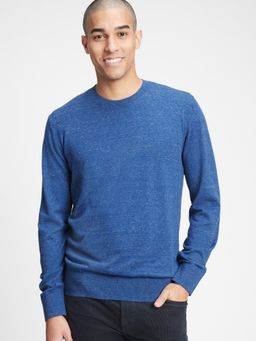 Sweter męski bawełniany jednokolorowy GAP. Okrągły dekolt, rękawy wykończone prążkowanym ściągaczem. Odpowiedni zarówno do biura, jak i na co dzień.