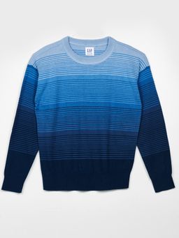Sweter dziecięcy z dzianiny. Paski ombre. Długie rękawy i okrągły dekolt. Ściągacze elastyczne. 100% bawełna.
