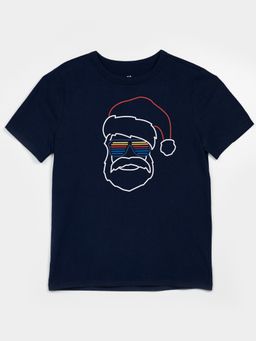 T-shirt dziecięcy z nadrukiem Świętego Mikołaja. Krótkie rękawy i okrągły dekolt. 100% bawełna organiczna.