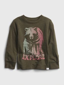 T-shirt dziecięcy z niedźwiedziem i napisem Explore. Długie rękawy i okrągły dekolt. 100% bawełna.