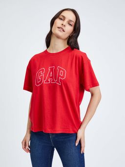 T-shirt damski z logo GAP. Jednokolorowy, bawełniany z krótkimi rękawami. Okrągły dekolt pod szyję. Luźny krój. 100% bawełna.