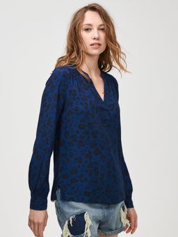 Kolorowy top damski. Elegancki luźny krój. Długie rękawy z marszczeniem.